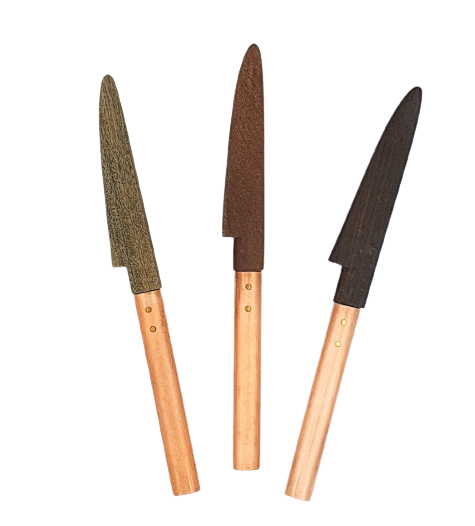 각기 다른 종류의 나무로 만들고 구리 (copper) 손잡이로 멋스러움을 더한 버터 나이프입니다.
