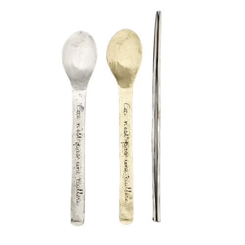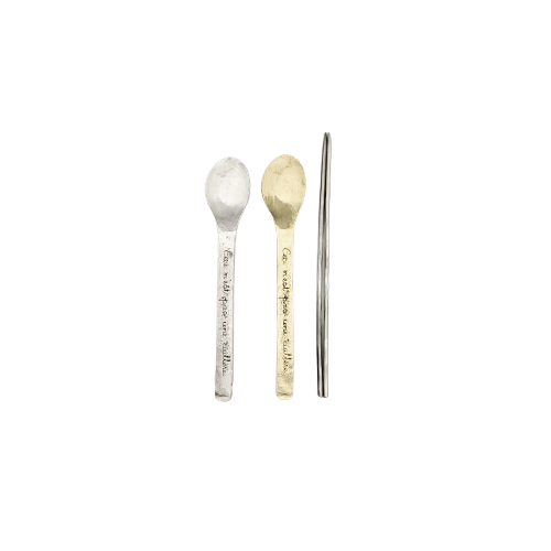 유니크하게 제작된 황동 숟가락과 은도금 젓가락은 언발란스한 매력을 가지고 있습니다.